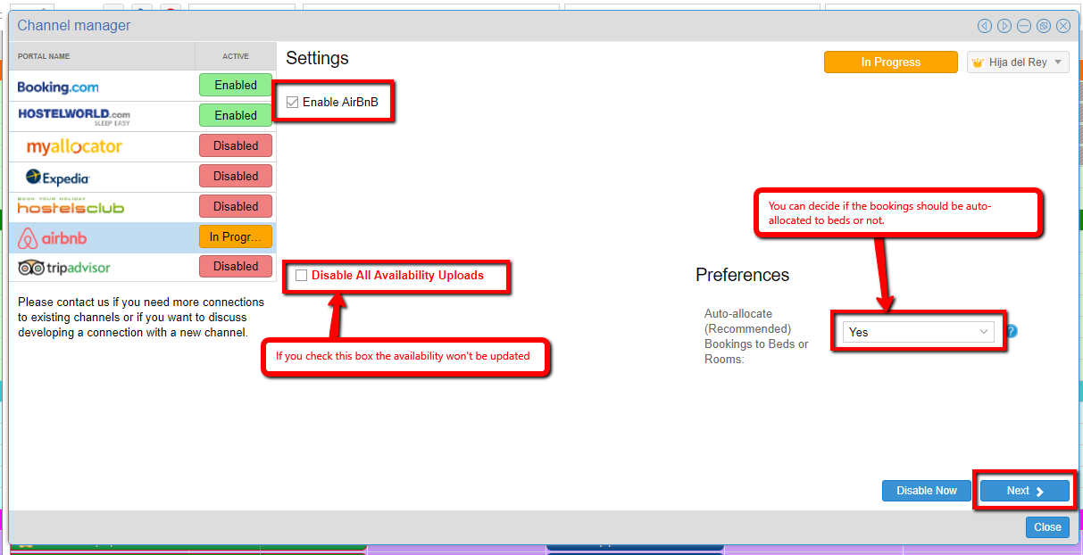 Please note that Airbnb downloads the availability information from FrontDesk Master in hourly intervals. It means that the availability is not updated as in the case of other channels. FrontDesk Master doesn't send it, it's Airbnb who downloads it from us. If you disable the Instant Book option, you can confirm the bookings before you accept them. In another case, there is more risk and you are exposed to an overbooking situation.