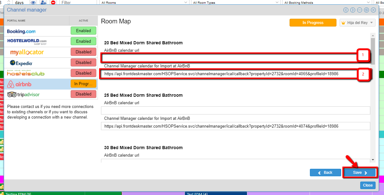 2) In the second line you can find the channel manager link which should be imported to Airbnb (for each room type).